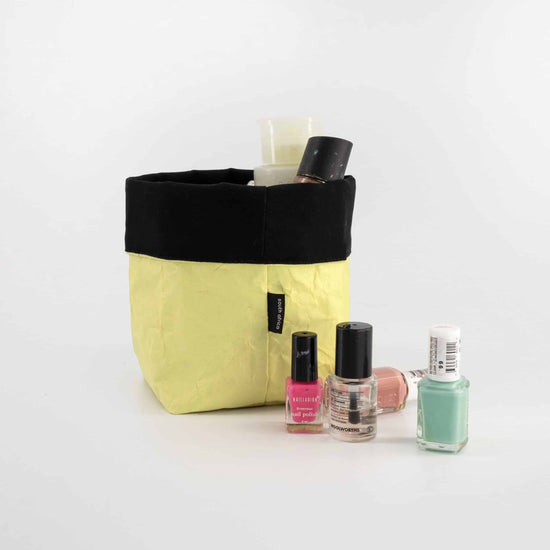 Made with ProtectPaper® (reclaimed and reinforced paper fused to cotton). Lined with cotton fabric.